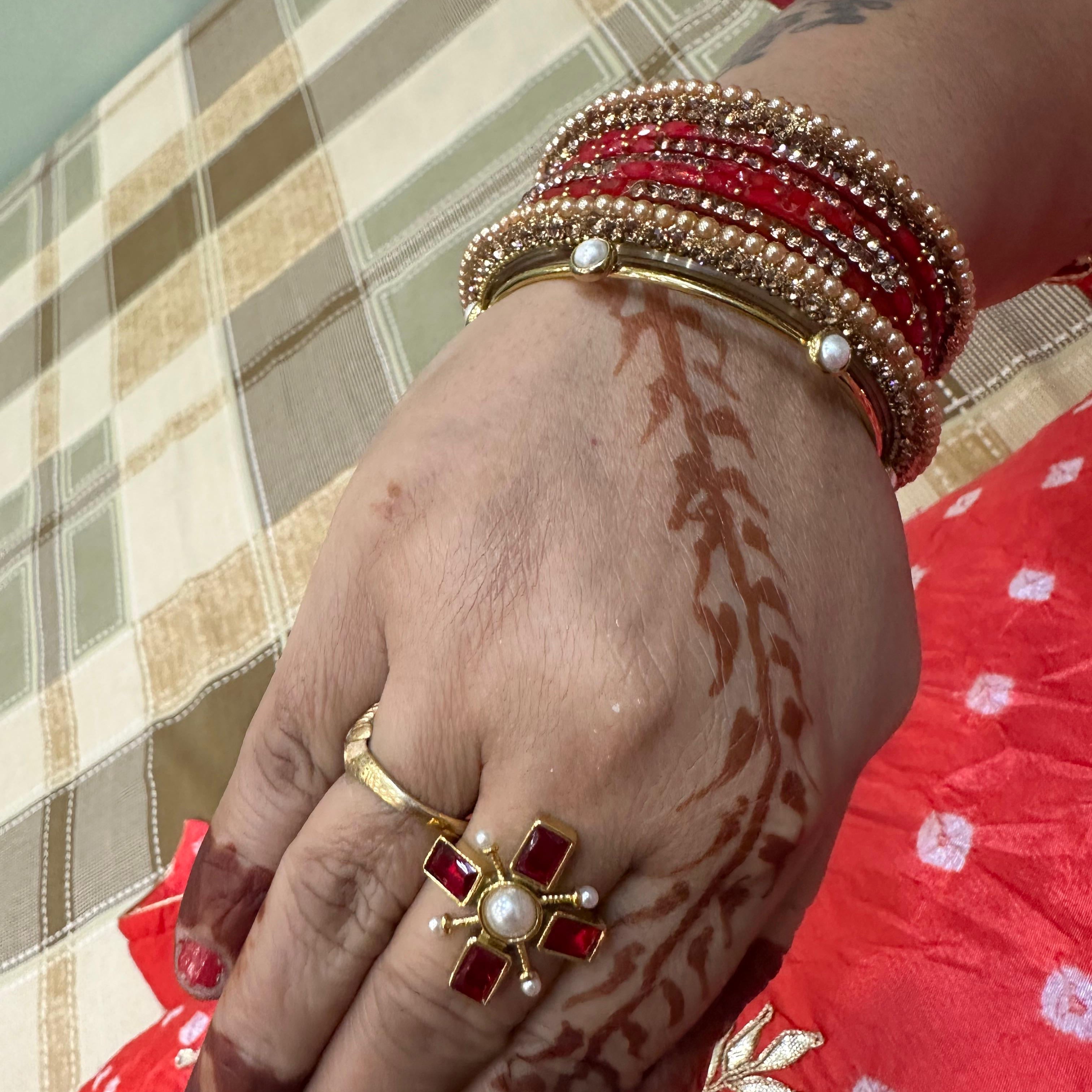 I’ve been wearing my pearl bangle and ring with red zirconia and pearl from Swasolé every single day for the past three months,