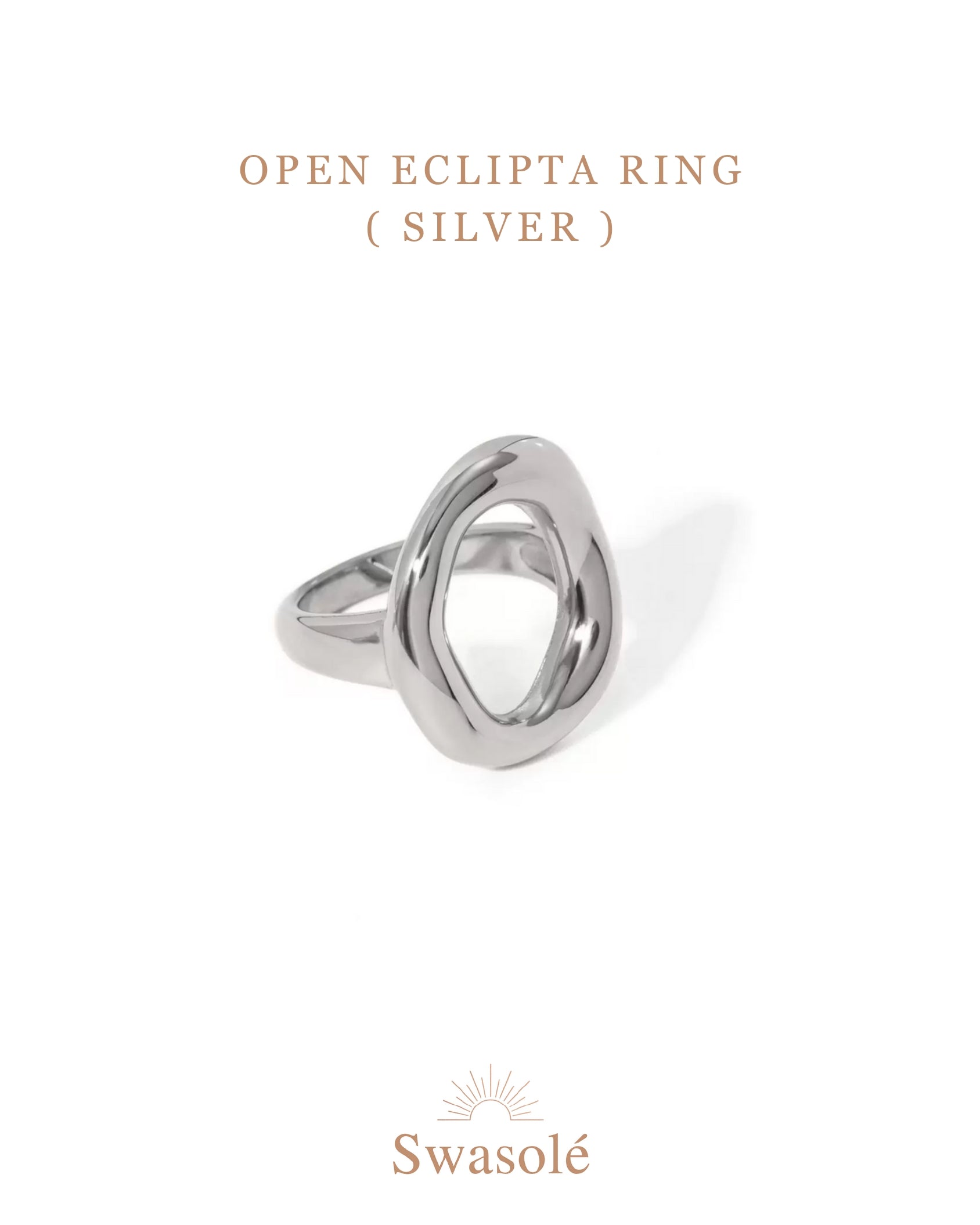 Crafted from premium stainless steel with a refined silver plating, the Open Eclipta Ring combines durability with elegance. Weighing 6.37 grams and sized at 8, its geometric design offers a modern, sophisticated look that complements any style. Ideal for those seeking a sleek accessory with lasting quality.