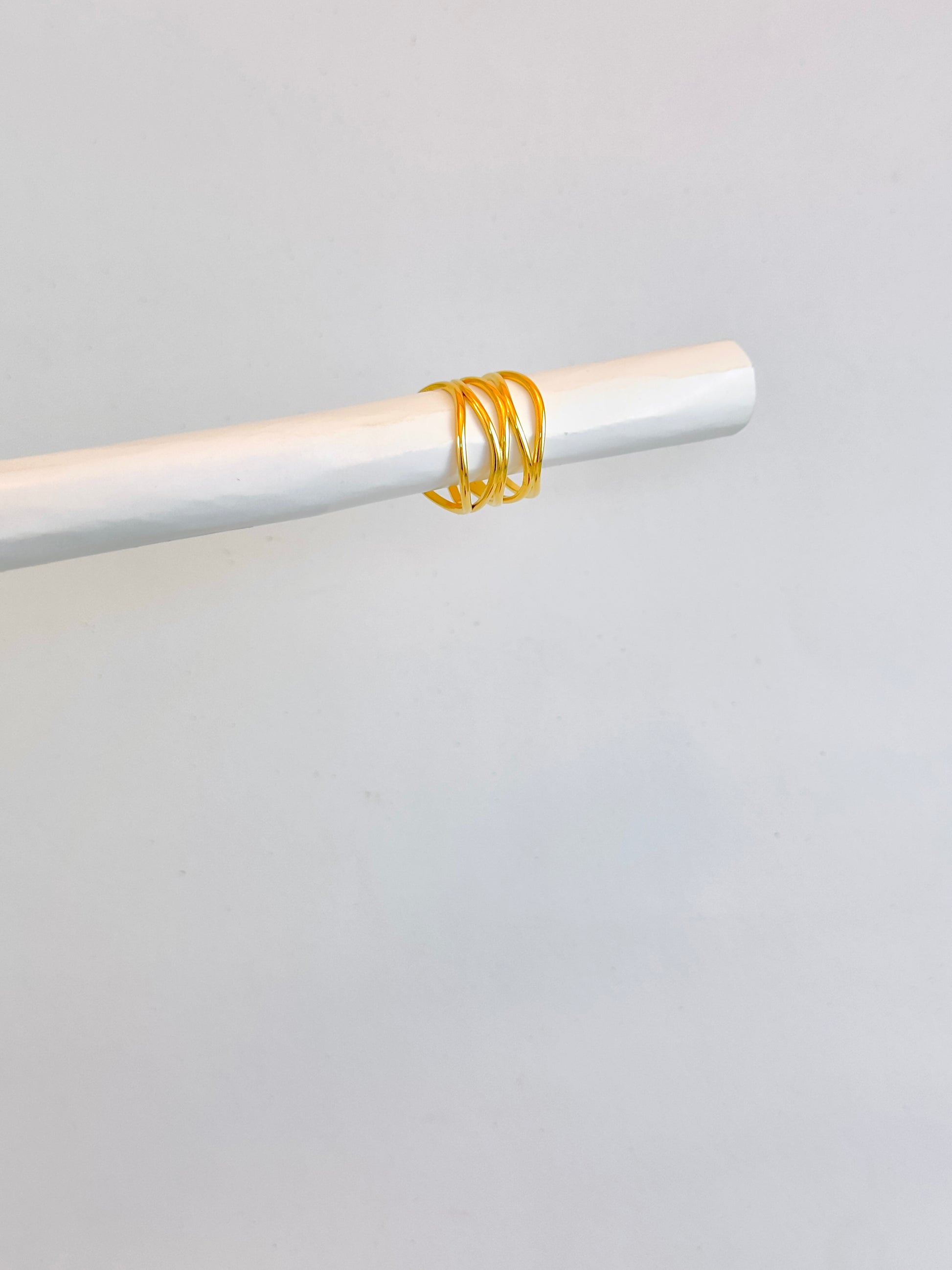 Inspired by the natural flow of ocean tides, the Tidal Grace Ring embodies elegance, movement, and balance. Featuring a sleek, multi-band design with soft overlapping curves, this ring is crafted to add a touch of modern sophistication to your everyday look.