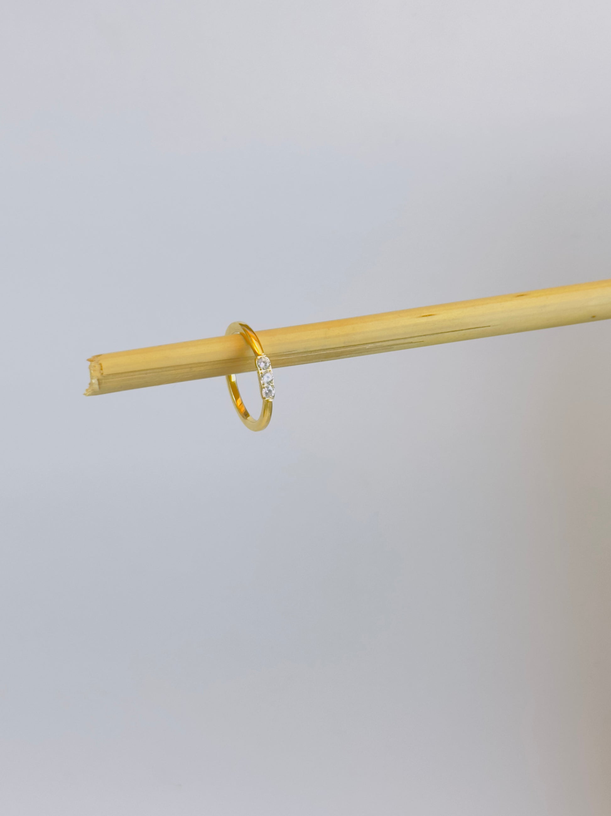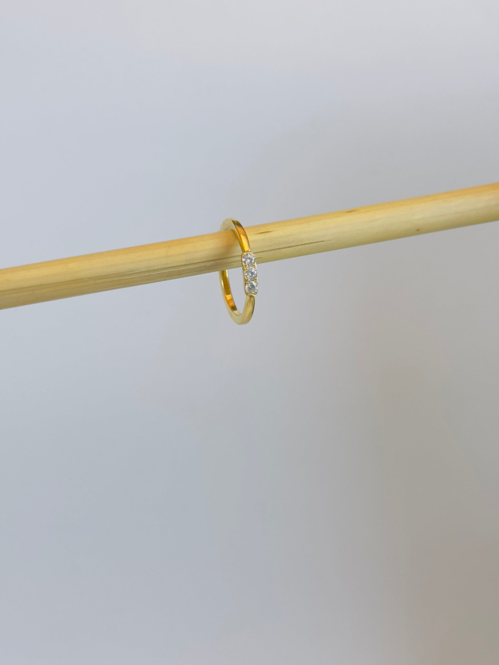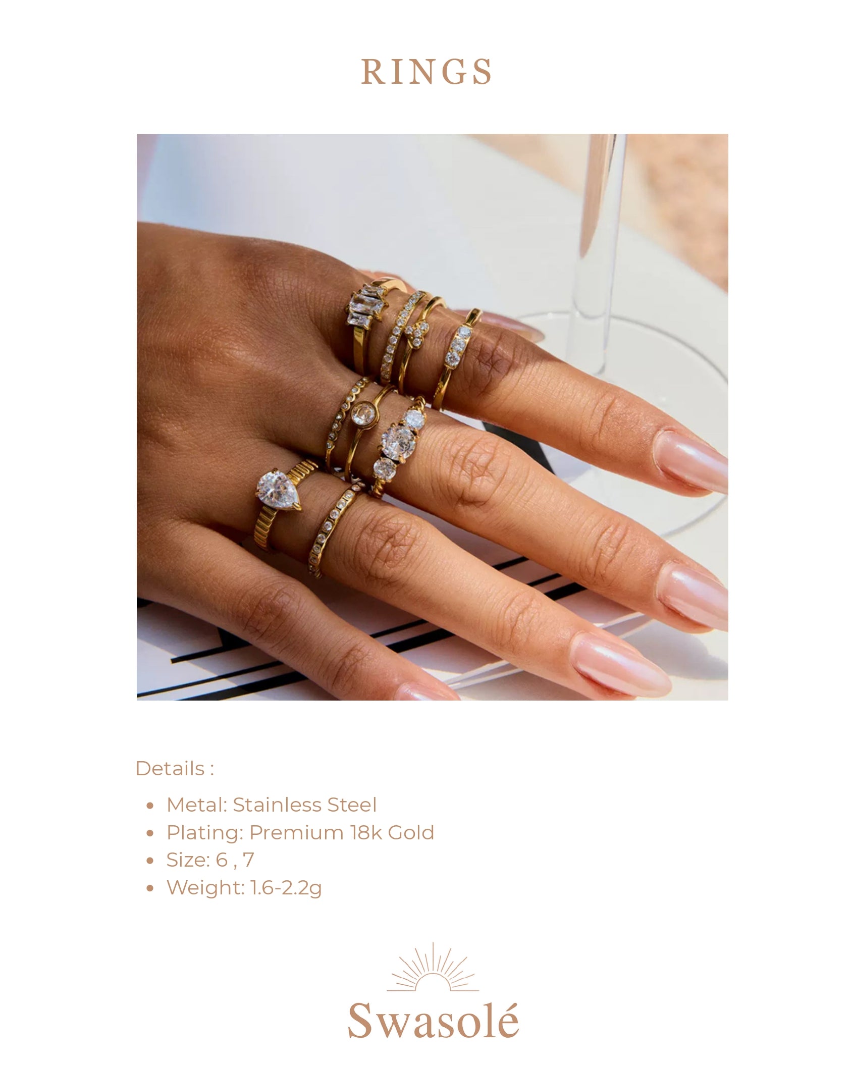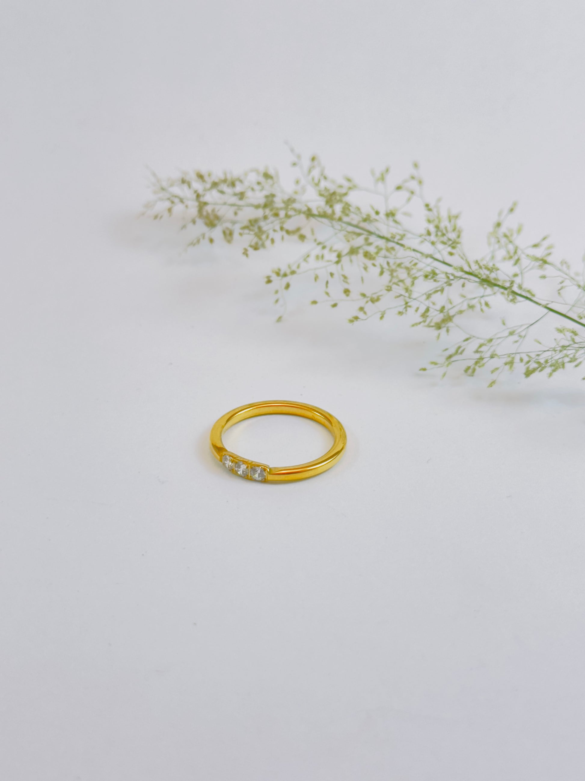 Crafted from durable stainless steel with a premium 18K gold plating, the Trinity Gleam Ring combines lasting quality with elegant design. Weighing between 1.6 to 2.2 grams and available in sizes 6 and 7, this ring features sparkling cubic zirconia accents that enhance its refined appearance. Ideal for those seeking a sophisticated accessory that balances strength and style.